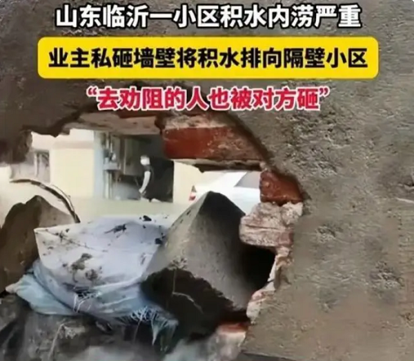 小区业主为自救,竟直接砸墙将积水排到隔壁小区,导致隔壁小区业主的财产遭受损失。